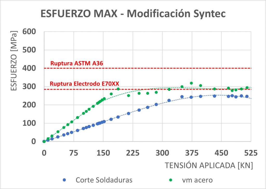 Aplicación de tecnologías FARO y HandySCAN para hacer un levantamiento de la estructura, incluyendo la consola, y ANSYS Mechanical para los análisis de elementos finitos (para el estudio de fatiga). Se efectuaron reuniones periódicas con el cliente, en las que Syntec le fue compartiendo los resultados de los análisis.