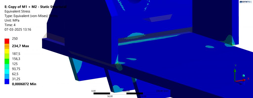 Syntec propuso un nuevo diseño para la consola, con una ingeniería sofisticada que incluyó el análisis por fatiga, fenómeno a los que se exponen estos equipos sometidos a cargas cíclicas. Esto para que el problema no vuelva a presentarse en esta gran minera.